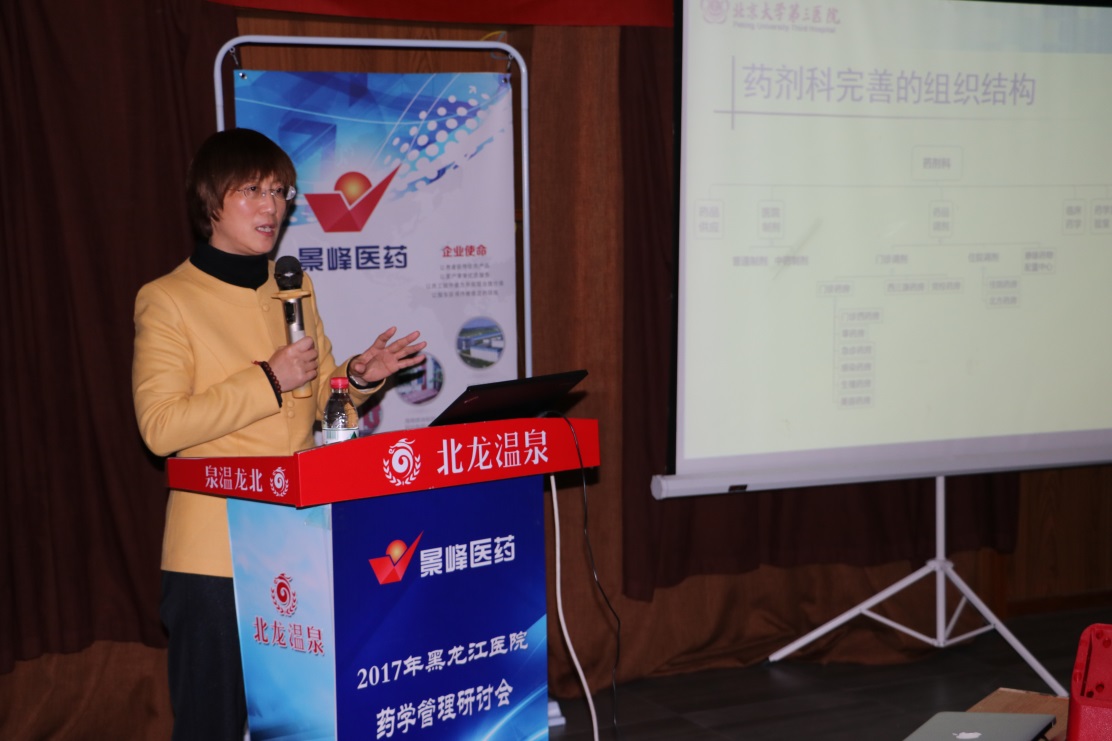 “2017年黑龙江医药管理研讨会”于2017年11月25日下午在风景秀丽的黑龙江松花江畔如期举行,本次会议由黑龙江省药学会主办,景峰医药独家承办,会议旨在推动全省医院药学发展建设,重点探讨医院药学管理理论、实践方法与工作思路,会议以专题讲座、经验交流的形式,分享与讨论如何提升药师的医院药学管理能力。本次会议有幸邀请来自北京大学第三医院杨毅恒教授与大家进行学术交流,来自黑龙江省内各医疗机构的药剂科、临床药学部专业人员近50人参加了会议。